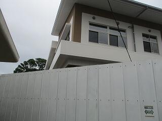 旧校舎から壁越しに新校舎をのぞいてみると、・・・。