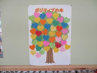 すべての学年に、ポジティブの木が掲示されています。友達のよいところを見つけ、それをこの木に貼り付けています。読んでみると、とても心が温かくなると同時に、幸せな気持ちになります。たくさん増えるといいですね!