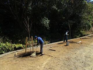 記念植樹する(在校生1~6年)サクラの場所が整地されました。あとは、24日に植樹するだけです。