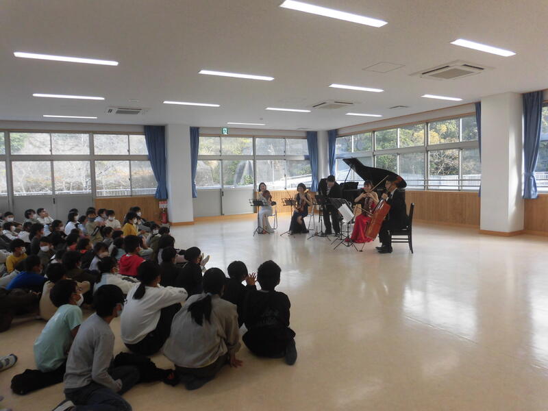 日向市出身のオーボエ奏者是沢悠さんとKOSEI QUINTETとの皆さんが、細島小学校でコンサートを開いてくださいました。