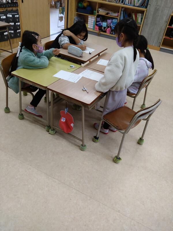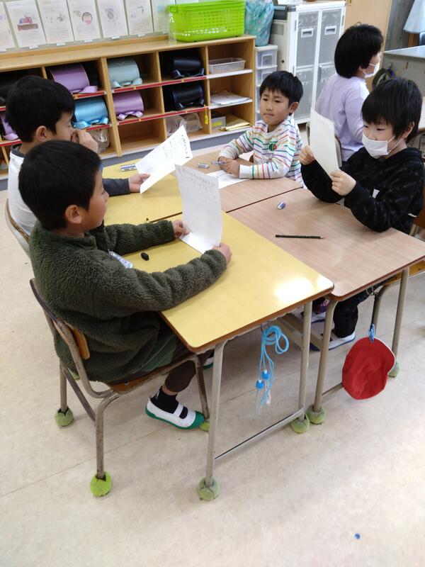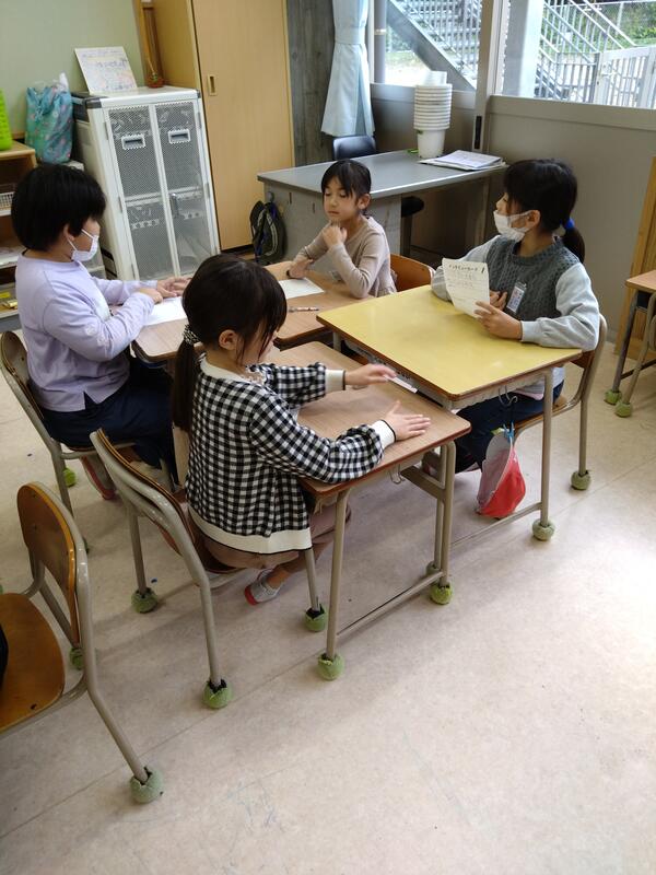 明日は、海の駅「ほそしま」に町探検♪インタビューをグループで練習しました。目を見て話を聞くことや、ハキハキ言うことを目標に練習しました。