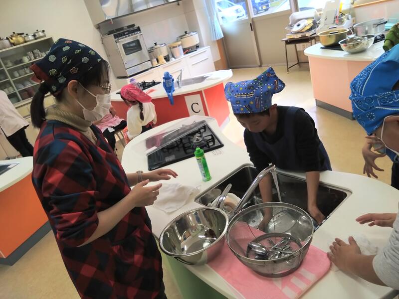 佐藤さんにも手伝っていただきながら、みんなで協力して、調理実習を終えることができました。