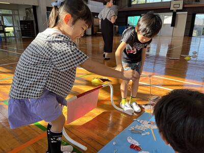 楽しいおもちゃで遊んだ後、景品ももらえて