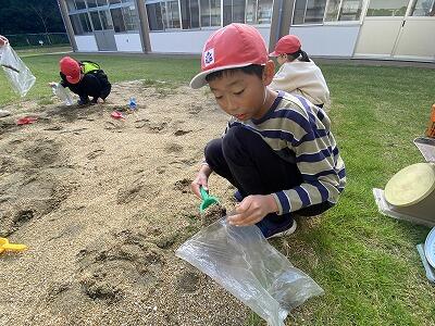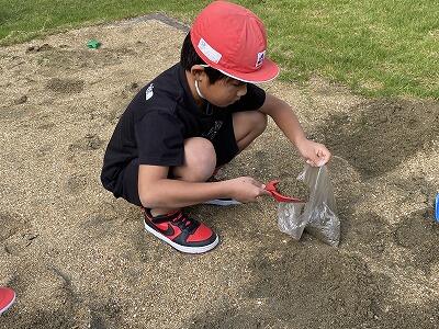 1kgはどれくらいだろう?と予想しながら、1kgの砂袋を作りました。