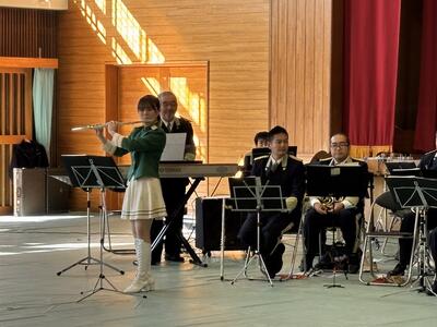 また、フルートで奏でる塩見小校歌をみんなで合唱しました。