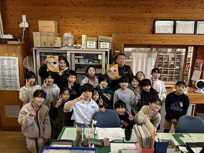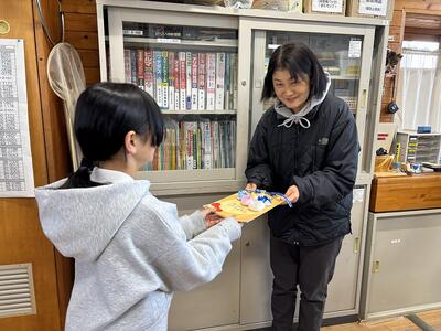 30日は事務室でも給食に感謝して、4年生が一般事務や技術員補助の先生方に感謝の手紙をもってきました。