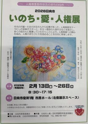 日向市教育委員会主催の「いのち・愛・人権展」が2月13日から市役所1階で実施されます。