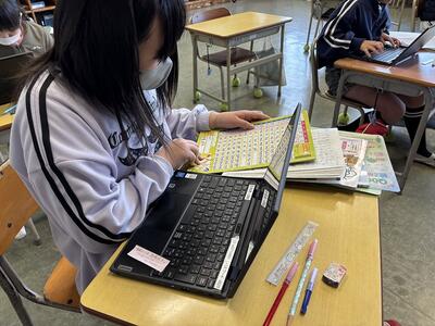 時折、ローマ字表を見ながら入力していましたが、「自作の物語文を書く」という目的に向かって、上手に入力できていました。