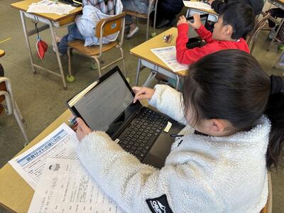 配備された初めのころは、日常的に活用することはなかなか難しかったのですが、最近はタブレットを活用した学習活動をよく見かけるようになってきました。