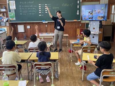この日も、子どもたちは「そらまめの会」の皆さんが教室に入ってくると、目を輝かせていました。