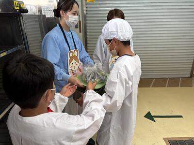 本校の給食にて子どもたちに向けたスペシャルイベントとして、ケーキが提供されました。給食センターの調理員の方々が給食コンテナ室にお越しいただき、給食当番の子どもたちに心を込めてケーキを手渡ししてくださいました。
