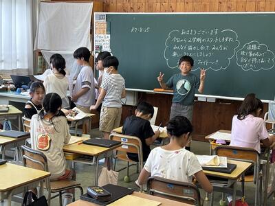 「今年できたことは、来年度以降も続けてほしい。例えば、友達を思いやる『笑顔』、自分で考え行動する『自立』、誰かのために動く『貢献』の気持ちを、これからも大切にしてください。皆さんは塩見小学校の一員として誇りを持ち、さらに成長していけるよう、これからもがんばってください」