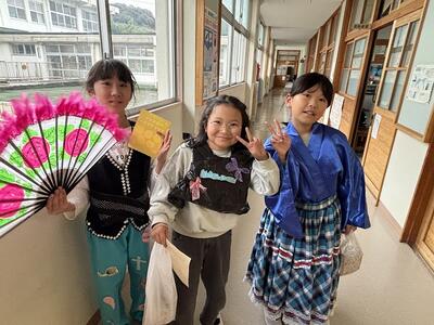 今年は、5年生3名、6年生3名、そして中学生が2名の計8名で浦安の舞を披露します。