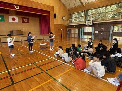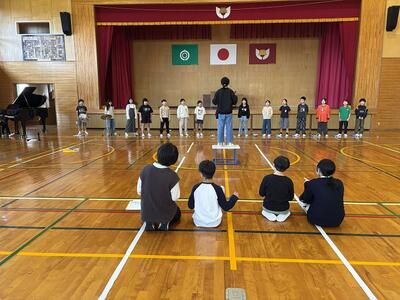 本番に向けて卒業式予行練習を行いました。6年生は、卒業証書授与など、一つ一つの動作を真剣な表情で確認していました。堂々とした姿からは、小学校生活最後の晴れ舞台を迎えるにあたっての、6年生の成長と決意が感じられました。 在校生も、6年生への感謝の気持ちを込めて、別れの言葉や歌の練習に一生懸命取り組んでいました。