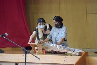 1年生は、音楽室で打楽器のみを使って「きらきらぼし」の演奏、2年生は、鍵盤ハーモニカの代わりにタブレットで「バーチャルピアノ」を使って演奏の練習をしていました。