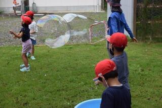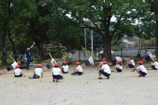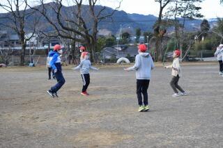 今朝は厳しく冷え込み、運動場の芝生には真っ白く霜が降りていましたが、子どもたちは寒さに負けずに元気いっぱいに体を動かしていました。