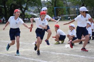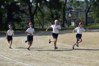 今日は天気もよく、5年生が体育の授業で短距離走をがんばっている姿が見られました。
