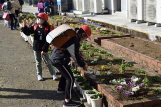 3月4日(金)、塩見・財光寺地区の民生委員・児童委員の皆様9名が定例会終了後に本校にお越しになり、花壇に花の苗を植えてくださいました。子どもたちとの絆をより一層深めたいとの思いをもっての実施となりました。「にこにこガーデン」の看板も手作りで用意されており、華やかな花壇があっという間に完成しました。今週、登校してきた子どもたちは早速見つけてうれしそうでした。