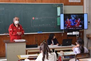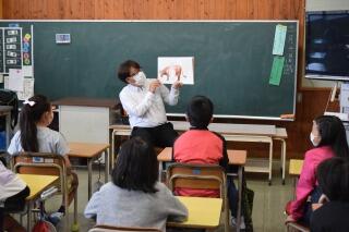 5校時、3年生の総合的な学習の時間に、「塩見自まん」というテーマで地域に伝わるひょっとこ踊りについての授業を行いました。塩見小校区内の永田地区はひょっとこ踊り発祥の地として知られています。講師としてひょっとこ踊り保存会会長の髙橋さんをお呼びし、ひょっとこ踊りの考案者や歴史について教えていただきました。3年生は今年のスポーツ大会でも踊っていますので、興味深そうに聞いていました。