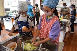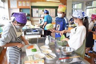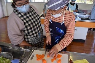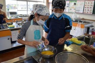 11月11日(金)、6年生が家庭科の授業で調理実習を行いました。作ったのはスクランブルエッグと野菜炒めです。卵を割ったり、野菜を切ったりと苦戦しながらもグループで協力し合って楽しみながら作っていました。野菜炒めを試食させてもらいましたが、ちょうどよい味付けでとてもおいしかったです。