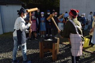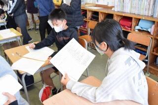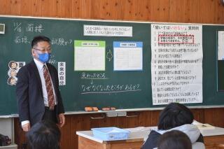 12月15日(木)は全学年の参観日でした。午前中に1・3・5年生、午後に2・4・6年生で実施しました。1年生と3年生は道徳、2年生は算数、6年生は図工で水墨画と、それぞれの学年で計画した授業を見ていただきました。5年生は10月に収穫した餅米を使って餅つきをし、保護者も一緒に味わいました。4年生は、体育館で「紅白歌合戦」と題して音楽の授業を行い、グループごとの発表を見ていただきました。