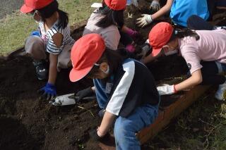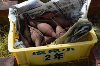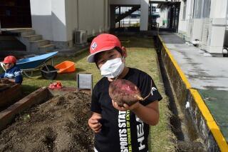 3・4校時、2年生が生活科の授業でいもほりを行いました。6月に校内の畑に植えていたもので、けっこう大きないもがいくつも収穫でき、子どもたちは大喜びでした。
