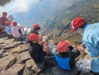 「大きくなってね!」と声をかけて放流しました。環境保全について学んだ、有意義な体験学習でした。
