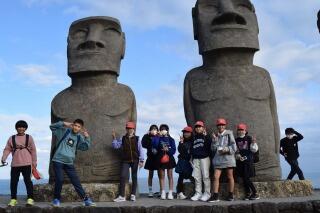 2日目は朝8時30分にホテルを出発し、宮崎ブーゲンビリア空港にある掩体壕に向かいました。第2次大戦中、飛行機を格納しておいた施設です。そこから出撃していった特効兵の少年達の様子や気持ちなどについて説明を聞き、子どもたちは戦争の悲惨さを感じ取ったようでした。その後、青島へ向かい、青島神社で参拝し、お土産の購入と昼食。そして最後の見学地である西都原古墳群へと向かいました。西都原考古博物館で縄文、弥生時代の土器などの展示物を見学し、帰路につきました。少し寒い2日間でしたが、子どもたちはみんな元気で、充実した2日間を過ごせたのではないかと思います。