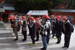 12月1日(木)、2日(金)の1泊2日で宮崎県内の修学旅行を実施しました。県内での実施はこれで3年連続です。1日目は日南市で飫肥城での班別学習を行い、昼食後に鵜戸神宮、サンメッセ日南を散策しました。宿泊はシェラトン・グランデ・オーシャンリゾートで、豪華な食事と贅沢な部屋での一夜を楽しみました。