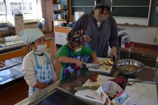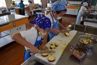 先日の芋掘りで収穫したサツマイモを使って、2年生が生活科の学習でおいもクッキング並びにおいもパーティを行いました。ふだん使い慣れていない包丁に悪戦苦闘し、時間はかかりましたが何とか大学イモができあがり、みんなでおいしくいただきました。