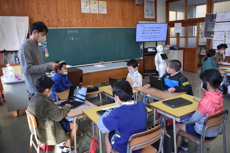 朝の時間、おはよう集会がオンラインで行われました。おはよう集会というのは、各委員会が全校児童に対して委員会の仕事の内容を紹介したり、お願い事を呼び掛けたりする集会活動です。今月は放送委員会の児童7名が、学習用タブレットの使い方について注意を呼び掛けました。進行はAIロボットペッパー君が担当し、事前にプログラミングされた動きと音声で表現していました。このような利用の仕方もとてもおもしろいと思いました。
