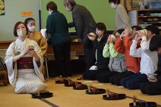 1月19日(木)、2・3校時に本校の和室で6年生を対象とした茶道教室が行われました。毎年6年生で行っているもので、過去2年間は図書室で実施しましたが、今年度は本来の和室で実施しました。茶道の先生から歴史や作法などを学び、実際に自分たちでお茶を点てて味わいました。ほとんどの児童が初めての体験で、楽しかったという感想が聞かれました。日本の古き良き伝統に触れる機会を与えていただいたことに感謝です。