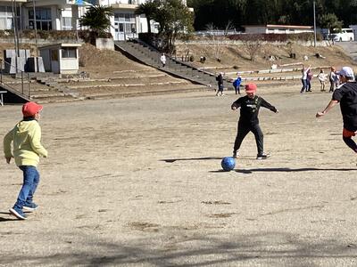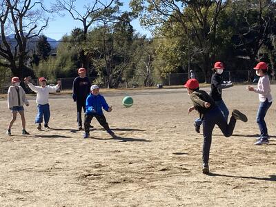 写真は、本校の昼休みの子どもたちの様子です。大寒のこの時期、寒い日が続きますが、ドッジボールやサッカー、アスレチック、ブランコなど子どもたちは元気に外に出て遊んでいます。