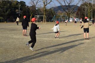 3月4日(金)、行き先を農村交流館横の運動広場に変更してお別れ遠足を実施しました。当初はお別れ集会も同時に行うことを計画していましたが、集会は別日に実施することにしました。今回の遠足は、地震・津波の避難訓練も兼ねていたため、海抜33メートルの水月寺を通るルートで遠回りして農村交流館を目指しました。前半は1・2・3年生が、後半は4・5・6年生が運動広場を利用させていただきました。久しぶりに広い場所でのびのびと体を動かし、子どもたちはとてもうれしそうでした。