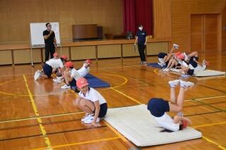 9月13日(月)、高鍋高等学校の体育科教諭、檜室先生に来校いただき、4年生のマット運動を指導していただきました。この日を含めて9月に4回予定されています。前転や後転のコツや注意すべき点について、実演を交えながら分かりやすく教えてくださいましたので子どもたちは楽しそうに取り組んでいました。