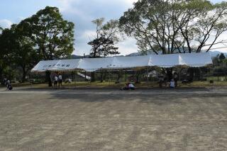 最初の見学地は宮崎空港の近くにある掩体壕(えんたいごう)です。これは、戦時中航空機や車両などを守るために覆ったり囲ったりする目的で作られたものです。宮崎特攻基地慰霊碑もあり、宮崎特攻基地慰霊碑奉賛会の方々が説明をしてくださいました。戦争は悲惨なものであり絶対にしてはならないという内容に、子どもたちも真剣な表情で聴き入っていました。