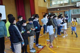 もうすぐ卒業を迎える6年生とのお別れ集会が体育館で行われました。5年生が中心となって計画し、クイズやゲームの後、各学年の出し物を発表しました。登校班や委員会活動などでお世話になった6年生に、どの学年も感謝の気持ちを伝え、楽しい一時を過ごしていました。