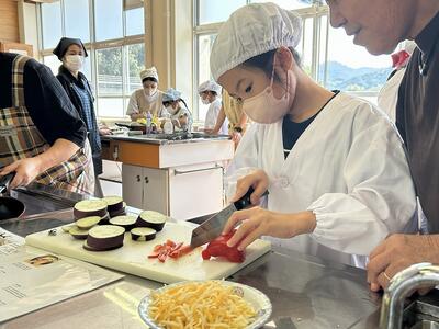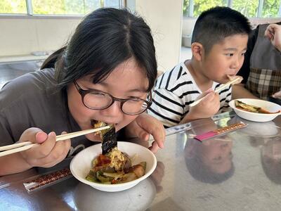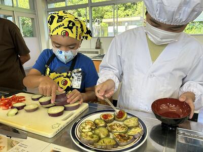 3年生が作った佐土原ナスの料理、私もごちそうになりました。サイコー!