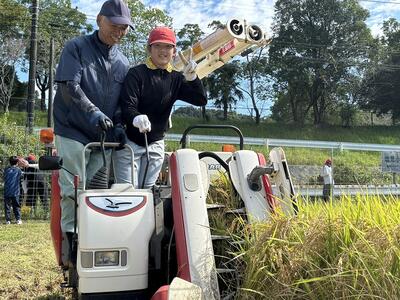 一通り刈り取ったら、次はコンバインでの稲刈りを体験させてもらいました。