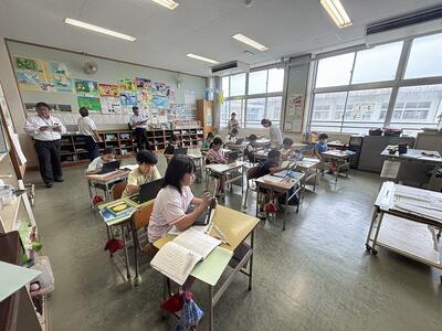 教育長をはじめとして、日向市教育委員会の皆様に、子どもたちの様子や先生方の授業を見ていただきました。