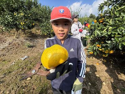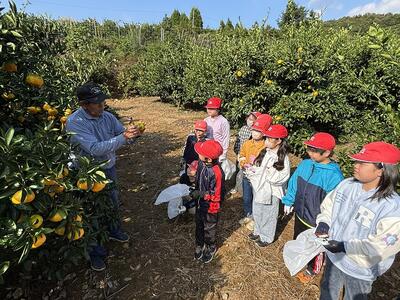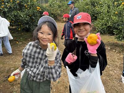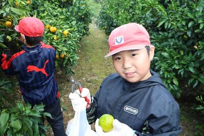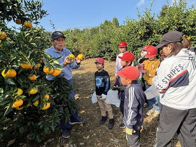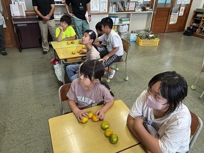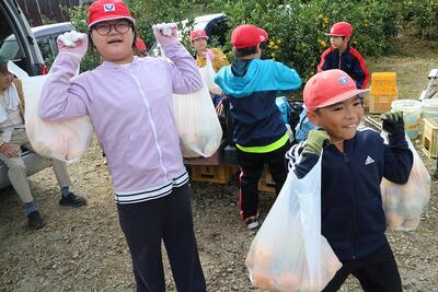 最後に、生産者の皆さんの思いが詰まった「ひょっとこみかん」を頂き、子どもたちも大喜び。