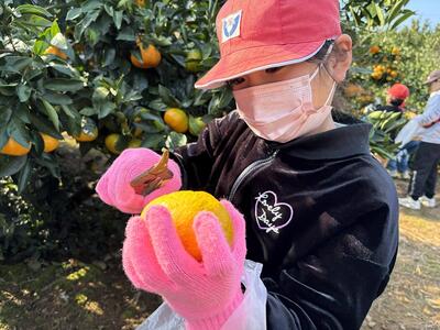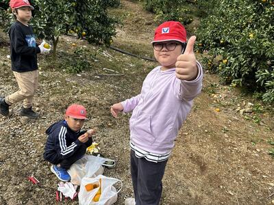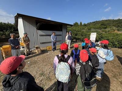 本校の元PTA会長である佐藤力さんをはじめとする農地・水の会の皆さんのご協力のもと、3年生がみかん狩りを体験しました。天気の影響で延期していましたが27日にようやく実施となりました。
