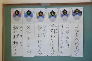 今月の全校朝会は学習指導部のお話でした。忘れ物をすると、自分が困るだけでなく、友達にも迷惑をかけてしまうことがあります。忘れ物をしないようにするためにはどうすればよいのか、6年生が6つのポイントを示してくれました。これらのことを心がけて、忘れ物が少しでも減らせるようになるとよいと思います。