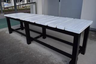 材料は区長さんが廃材を集めて提供してくださいましたので、組立やペンキ塗り、ニス塗り等を技術員さんに教わったり手伝ってもらったりしながら行い、立派なベンチができあがりました。今後、社会福祉協議会にもご協力いただき避難所に設置される予定です。自分たちのしていることが世のため人のために役立っているということを実感し、自己有用感に繋がってくれれば、と思います。