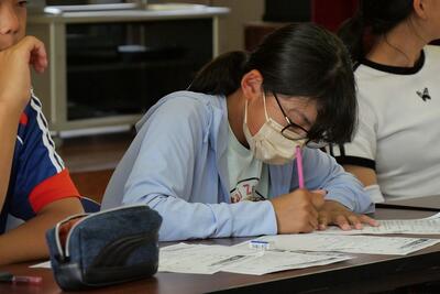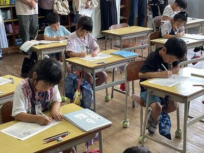 子どもたちは、佐土原ナスのことについてお話していただいたことを、懸命にメモしていました。