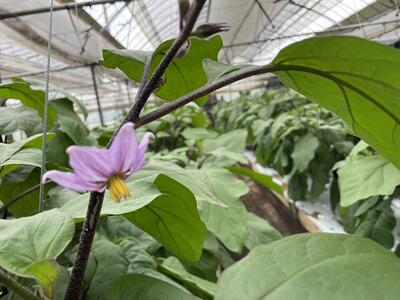 ナスの様子を観察したら、佐藤さんから「大きいサイズを見つけたら、1本ずつ収穫していいぞ」と言っていただきました!