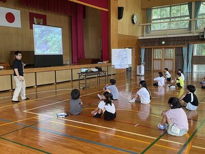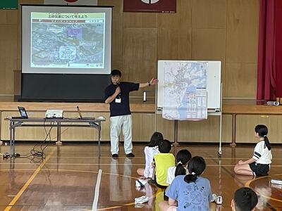 日向土木事務所と日向市防災推進課の皆さんにおいでいただき、5・6年生対象に、防災教室が行われました。