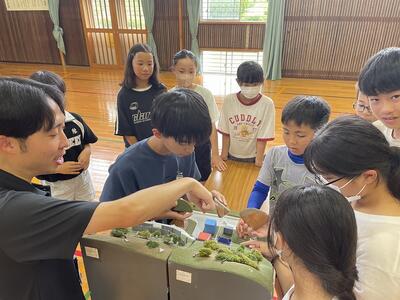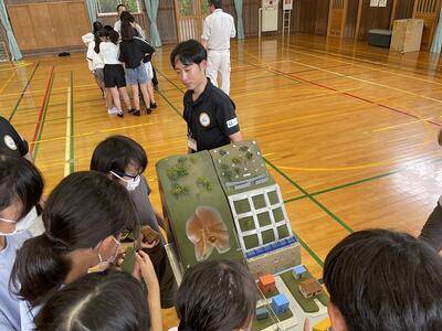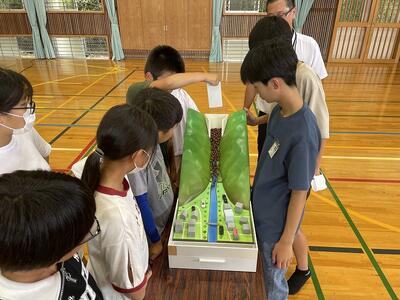 土石流や地滑り等の動画を見たり、模型で実際に体験してみたりして、土砂災害の予兆や防災の工夫などを学びました。