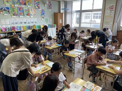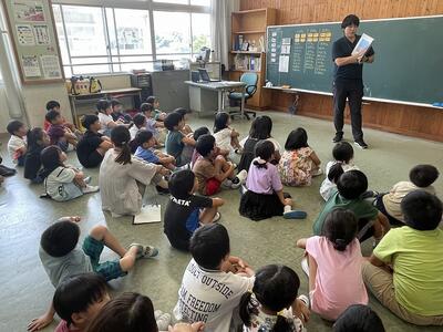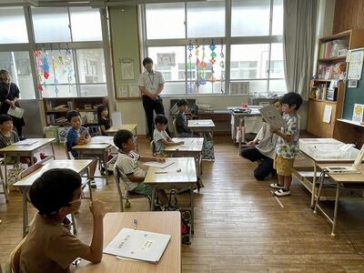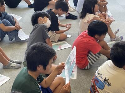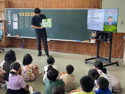 本校の学習指導等支援教員が「へいわってすてきだね」という絵本の読み聞かせを行いました。絵本のもとになったのは、沖縄の小学1年生が書いた文章だそうです。