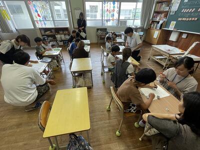 2年生も算数です。たくさんの星をどのように数えればいいのか考えていました。